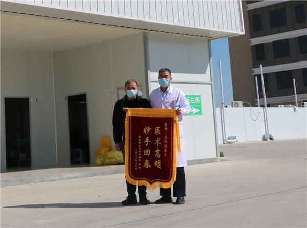 “我們只送錦旗不送禮!”12月26日上午,詔安縣橋東鎮外鳳村村民許艷福來到縣發熱門診處,為同康醫院醫生、退役軍人吳松溪送上一面“醫術高明,妙手回春”錦旗,以此感謝吳松溪為其父親醫治多年咳嗽問題。