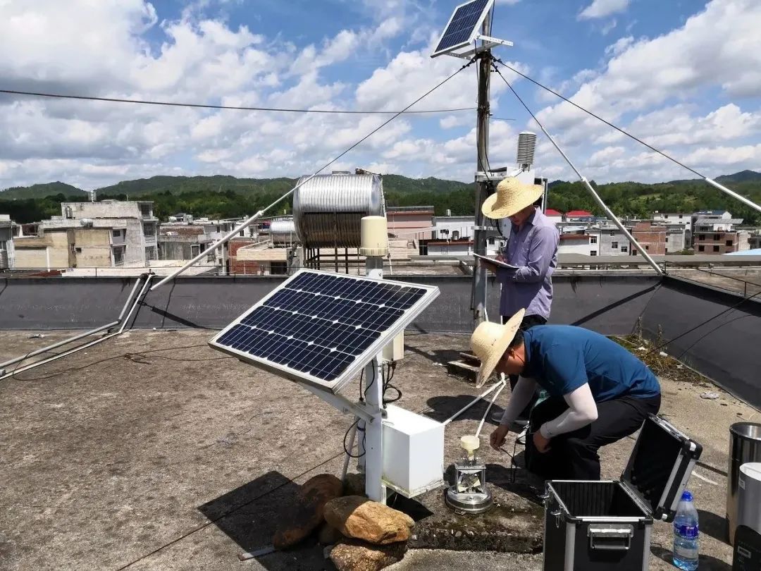 圖為龍巖市氣象局應急保障黨員突擊隊在高溫天氣下維護儀器