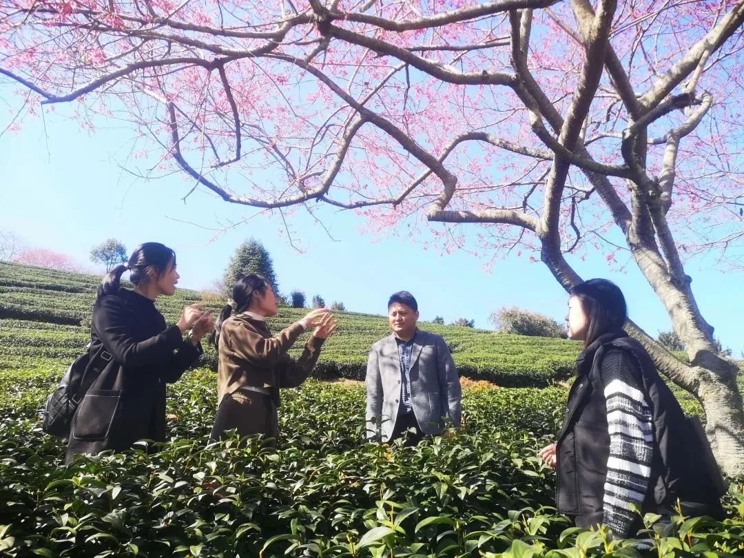 圖為龍巖市氣象局科研團隊實地回訪櫻花花期預報服務情況
