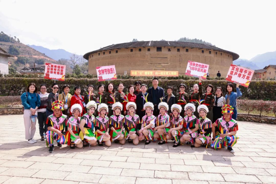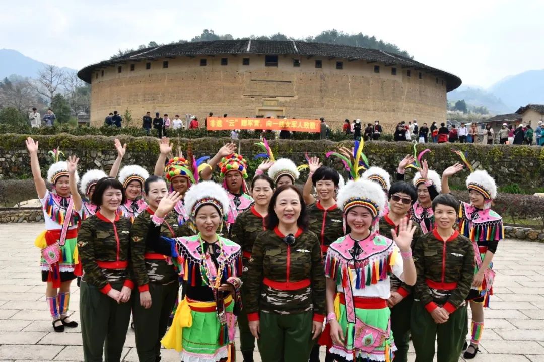 陽春三月,最是一年春好處。3月4日,在世界文化遺產華安二宜樓前,一場別開生面的“非遺‘云’贈軍營,向一線女軍人致敬”活動吸引不少游客駐足觀看。漳州退役女兵和高山族同胞歡聚一堂,共舞共賞非遺文化,并將漳州人民的擁軍熱情通過視頻方式,與遠在一線的63926部隊女軍人一起,共同慶祝即將到來的“三八”婦女節。
