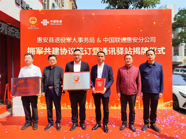 3月15日上午,惠安縣退役軍人事務局和中國聯通惠安分公司舉行擁軍優屬合作協議簽約活動,同時在聯通營業廳設立退役軍人通訊服務驛站,并授予聯通惠安分公司“崇軍聯盟”牌匾。這是惠安縣打造退役軍人系列特色服務驛站的又一個行業領域拓展。