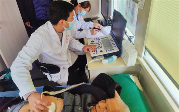 ↑優撫對象在醫療巡診車上做B超檢查 曾參加過邊境戰爭的82歲老兵賴松昌多年來被傷病纏身,在做完各項檢查后,他對工作人員感慨道:“我這一身毛病都是舊傷了,每到陰雨天,腰疼腿疼的受不了,平時就貼貼膏藥緩解一下。我家住在文元村,去省城一次太折騰,掛專家號更是難上加難,今天你們來,我打心里高興,這真是實實在在把健康送上門!” 28日上午,在上杭縣城區瓦子街廣場的“上杭老兵之家”門前,來自臨江鎮、臨城鎮、湖洋鎮的優撫對象們在志愿者的引導下,有序排隊登記檢查?;顒蝇F場,醫療巡診隊免費開設專家坐診、彩超、X線、心電圖、生化全套、血常規、乙肝兩對半、HP(幽門螺桿菌尿素酶抗體定性檢測)、腫瘤標志物篩查等多個項目的系統檢查。醫護人員細心接待、耐心問診;醫生根據每個人情況不同,有針對性地提出科學診療方案為其開具處方、免費發藥,并對部分優撫對象提供心理疏導等服務。