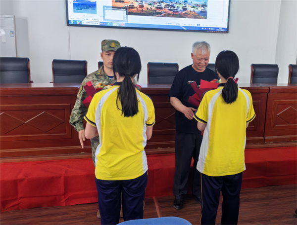 宣講活動中,惠華中學學生代表向授課官兵及老兵宣講員獻花。
