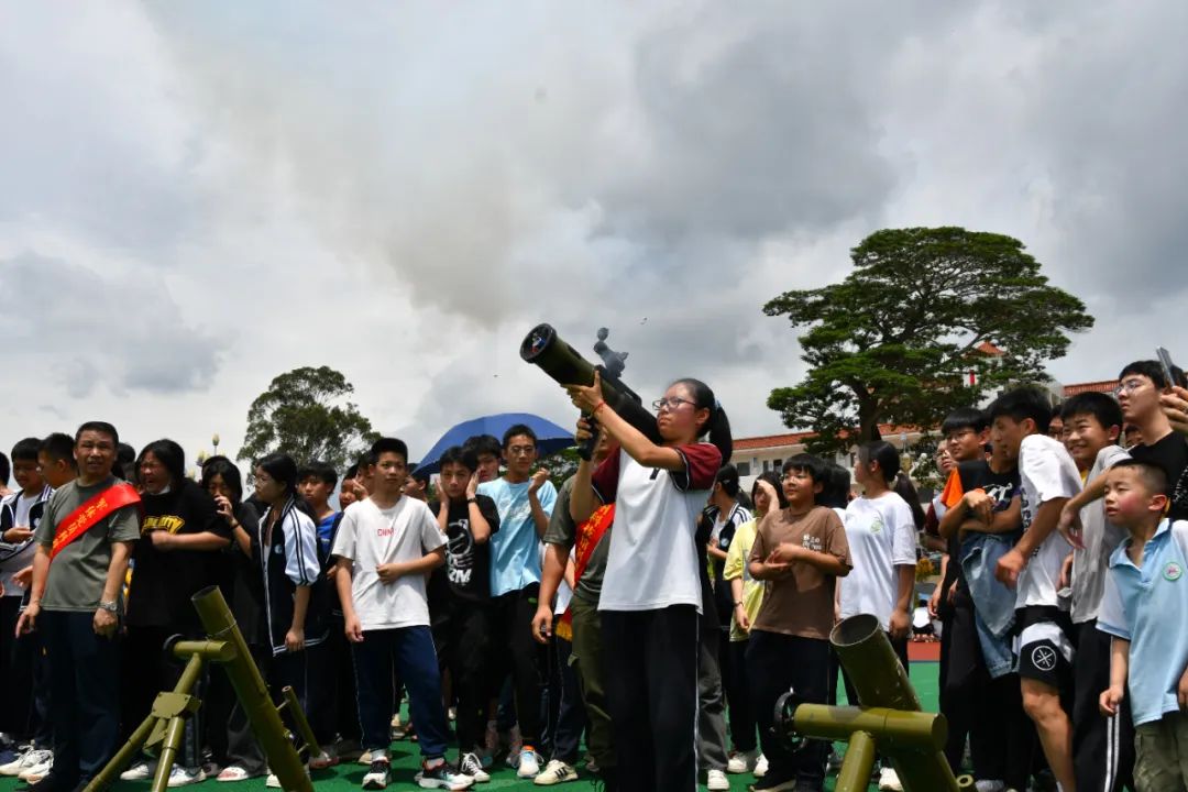 在軍事移動體驗站,當“轟”的一聲巨響響徹操場上空時,學生們掌聲雷動?,F場還有不少女生巾幗不讓須眉,親自體驗“實彈”射擊,更多的學生紛紛為只能享受幾分鐘的體驗而感到惋惜。多樣的“軍”味課程,沉浸式的體驗模式,不僅激發了學生熱愛祖國、崇軍尚武的熱情,也樹立起民族團結一家親的優良傳統。