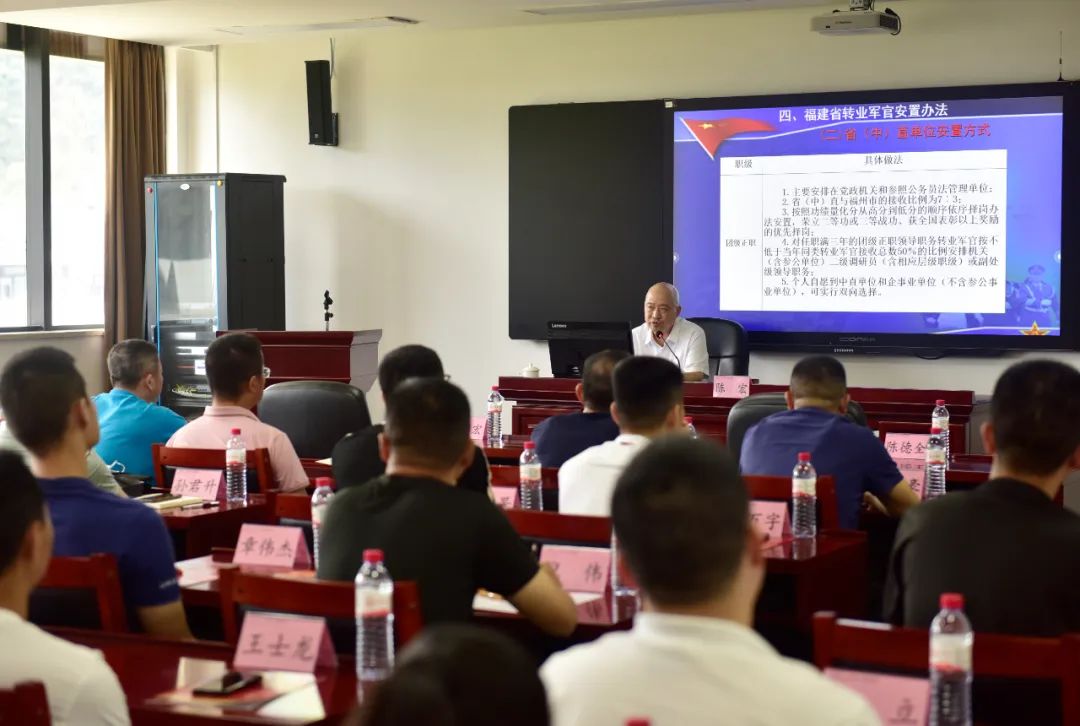 省退役軍人事務廳安置就業處陳宏同志圍繞轉業干部安置相關政策進行輔導授課,并就大家關心的熱點問題進行現場答疑解惑,幫助轉業警官熟悉安置程序、提高競崗能力、做好擇業準備。 “送政策進軍營”活動干貨滿滿、及時解渴,受到轉業警官的一致好評。安置到福州的轉業警官孫君升表示,“授課內容既有安置政策法規的詳細解讀,又有多年來安置數據的綜合分析,對我們下一步安置擇崗幫助很大?!?/p> |