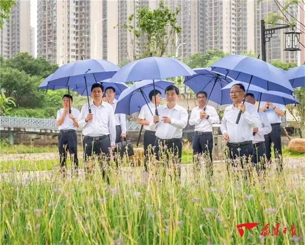 6月10日,周祖翼在龍巖市新羅區東山濕地公園調研。 溯洄從之、山水來迎,從漳州市冒雨向北行進,來到九龍江上游龍巖市。雨中的新羅區小池鎮培斜村空氣格外清新,北溪上游九溪廬天然林擁有原始次森林8000畝,發揮著涵養水源、保持水土的重要生態功能。周祖翼走在村里的森林步道,了解森林植被保護和開發利用、創新森林資源管理等工作,希望培斜村充分發揮基層黨組織戰斗堡壘作用和黨員先鋒模范作用,把農村污水治理與推進鄉村振興有機結合,發展特色農業產業,帶動村民增收致富。在東山濕地公園,周祖翼認真察看公園建設和小溪河生態恢復、水質提升等情況,指出山水林田湖草沙是一個生命共同體,要建設立體海綿城市,鞏固整治成果,不斷提升水質,實現安全、生態、美麗、和諧,打造讓老百姓滿意的幸福河湖。漳平永福鎮臺灣農民創業園臺品茶園,茶山連綿,山嵐氤氳。周祖翼了解永福片區脆弱區域生態林修復等情況,與當地臺胞代表、基層干部群眾圍坐交談,傾聽他們來永福創業和參與九龍江流域保護的經歷感受,聽取意見建議。周祖翼希望大家繼續做好茶產業文章,積極參與生態環境治理,攜手守護綠水青山;促進閩臺人才技術等領域交流合作,干出一番事業,帶動更多農民勤勞致富,共同推動閩臺融合發展。