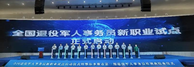 7月8日,全國退役軍人事務員新職業試點啟動儀式在內蒙古自治區鄂爾多斯市舉行。圖為啟動儀式現場。