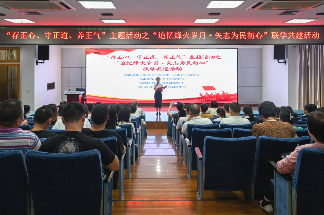 7月26日下午,廳機關黨委(人事處)黨支部聯合省退役軍人服務中心黨支部、省腫瘤醫院行政職能黨總支以及倉山區退役軍人事務局黨支部,在福建省腫瘤醫院學術廳開展“存正心、守正道、養正氣”主題活動之“追憶烽火歲月·矢志為民初心”聯學共建活動,邀請抗美援朝老戰士、福建師大離休教師黃以孟講述新時代老兵故事。省退役軍人事務廳二級巡視員陳勇參加活動。 活動現場,與會黨員干部共同觀看抗美援朝老戰士黃以孟人物故事宣傳片——《信念的腳步》,傾聽黃以孟講述新時代老兵故事,深刻地體會到“報國寸心堅似鐵”的軍人情懷和“老驥伏櫪,志在千里”的奉獻精神。