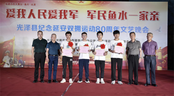 7月26日,南平市光澤縣雙擁共建工作領導小組辦公室、光澤縣退役軍人事務局、光澤縣關愛退役軍人協會等單位聯合舉行“愛我人民愛我軍 軍民魚水一家親”的“紀念延安雙擁運動80周年”文藝晚會。 活動中,光澤縣退役軍人事務局為擁軍模范企業頒發獎牌,為23位邊海防官兵家屬每人發放慰問金500元。光澤縣關愛退役軍人協會為3戶因災因病造成生活困難的退役軍人家庭每戶發放幫扶款2000元,為5名考上軍校的學生每人頒發獎勵金2000元。 建甌市