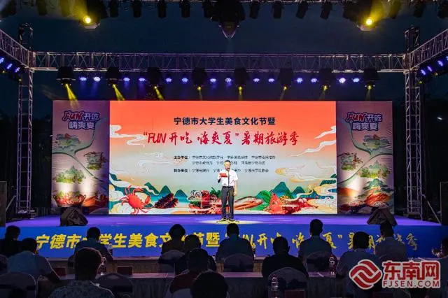 6月11日晚,寧德市大學生美食文化節暨“FUN開吃+嗨爽夏”暑期旅游季在寧德師范學院舉辦。東南網記者 葉伏國 攝 本次活動以美食為媒,由寧德市文旅局、寧德市委網信辦、寧德市教育局、寧德市商務局、共青團寧德市委、寧德師范學院資產后勤管理處共同主辦,旨在充分發揮青年學子在美食文化傳播中的中堅力量,通過線上線上相結合的方式,多維度展示寧德的山海之秀、物產之盛、煙火之美,讓“山海寧德”旅游品牌更加深入人心。
