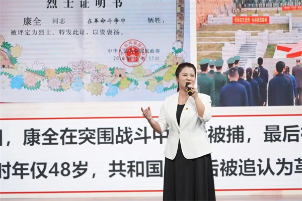 《讓紅色基因代代傳承——康全烈士》 (宣講人:康智敏) “從小,我就聽爺爺康金祥講自己家的紅色故事。爺爺告訴我,從1926年到新中國成立的23年間,在黨的領導下,家中十幾位先輩陸續走上了革命道路?!备锩彝サ暮蟠抵敲?,講述康氏家族紅色基因代代相傳的故事。