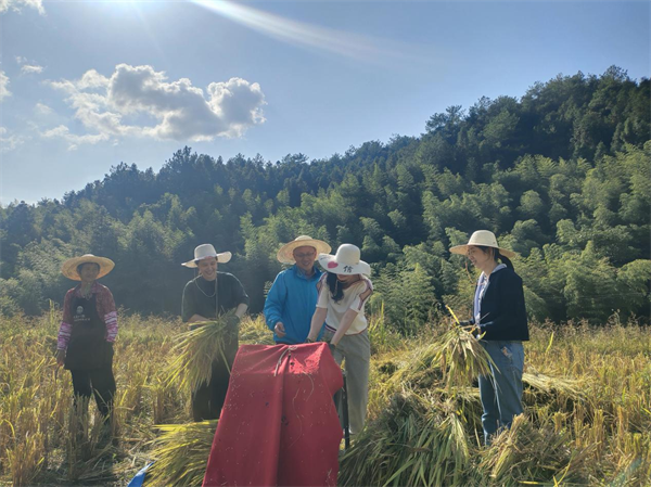 秋收的上早康村,金燦燦的稻穗鋪滿了稻田。在水稻收割現場,黨員干部們在當地村民的細心指導下,頂著秋日的驕陽,卷起袖子, “扎”進稻谷里割稻、搬運、脫粒,體驗水稻收割的快樂和艱辛,臉上掛滿了勞動的汗水和豐收的喜悅。