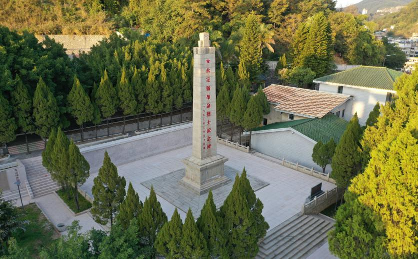 永定區革命烈士陵園紀念碑 英名墻長度約23米,高3米,刻有永定4700余名烈士名字;浮雕墻長度約23米,高3米,浮雕墻用“豐碑式”來制作;碑林墻將永定紅色故事歸納為10個板塊,每一個板塊包含2至3個故事;紀念館由“忠誠鑄豐碑”和“共和國脊梁”兩部分組成。
