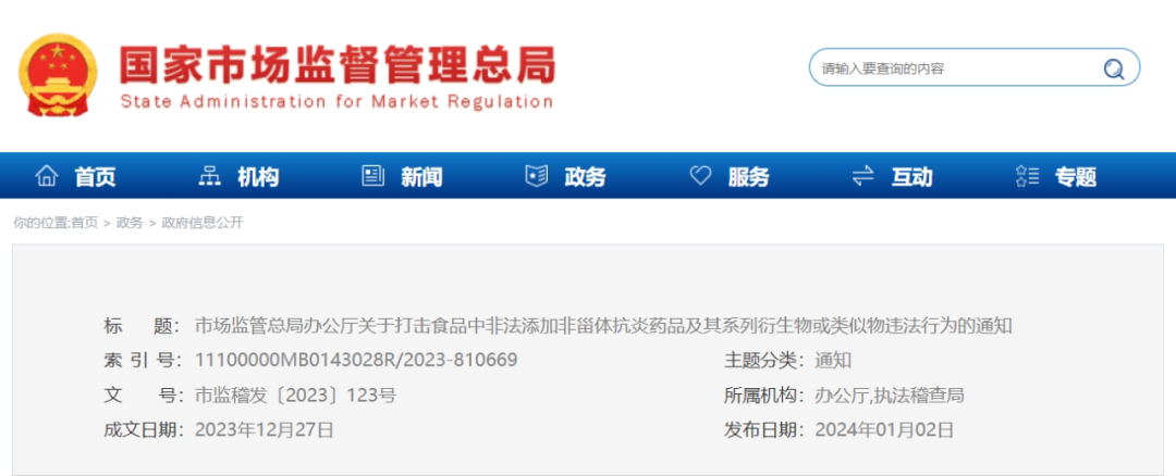 市場監管總局辦公廳關于打擊 食品中非法添加非甾體抗炎藥品及其系列衍生物或類似物 違法行為的通知 各省、自治區、直轄市和新疆生產建設兵團市場監管局(廳、委): 近年來,宣稱功能食品非法添加藥品、藥品衍生物或類似物的違法案件時有發生,危害人民群眾身體健康。近期,總局組織山東省市場監管部門查辦“青島尚醫制藥有限公司涉嫌生產經營添加藥品的食品案”,出具了有毒有害專家認定意見?,F將《食品中非法添加非甾體抗炎藥物的有毒有害專家認定意見》(見附件)發給你們,可作為案件查辦中甄別有毒有害物質成分、實施定罪量刑的參考。 市場監管部門應當從速從嚴查處此類案件,依法吊銷許可并處罰相關責任人;涉嫌犯罪的,要及時移送公安機關處理。 附件:食品中非法添加非甾體抗炎藥物的有毒有害專家認定意見 市場監管總局辦公廳 2023年12月27日 (此件公開發布) 附 件 食品中非法添加非甾體抗炎藥物的有毒有害專家認定意見 2023年11月24日,中國計量科學研究院受國家市場監督管理總局執法稽查局委托,組織專家對食品中非法添加非甾體抗炎藥的有毒有害性進行評估、認定。 專家組聽取了匯報,經研究,形成認定意見如下: 一、非甾體抗炎藥具有解熱、鎮痛、消炎等作用,包括但不限于: 1.以乙酰苯胺為母核的藥物,如對乙酰氨基酚、非那西丁等; 2. 以水楊酸為母核的藥物,如阿司匹林、貝諾酯、二氟尼柳等; 3. 以吡唑(二)酮為母核的藥物,如保泰松、氨基比林、安替比林、安乃近、非普拉宗等; 4. 以苯并噻嗪為母核的藥物,如吡羅昔康、美洛昔康等; 5. 以二芳基芳雜環為母核的藥物,如塞來昔布、羅非昔布等; 6. 以芳基甲酸、芳基乙酸、芳基丙酸為母核的藥物,如雙氯芬酸、布洛芬、吲哚美辛、萘普生、甲氯芬酸等; 7. 其他,如尼美舒利、阿扎丙宗等。 二、依據《食品安全法》,食品不得添加藥物,而該類原料也從未獲得批準作為食品添加劑或新食品原料,以及保健食品原料,因此,在食品中檢出上述非甾體抗炎藥,均屬于非法添加。 以上藥物及其系列衍生物或類似物具有相似/相同的作用,具有類似屬性和危害性。因此,添加有上述物質的食品有對人體產生毒副作用的風險、影響人體健康,甚至可危害生命。 |