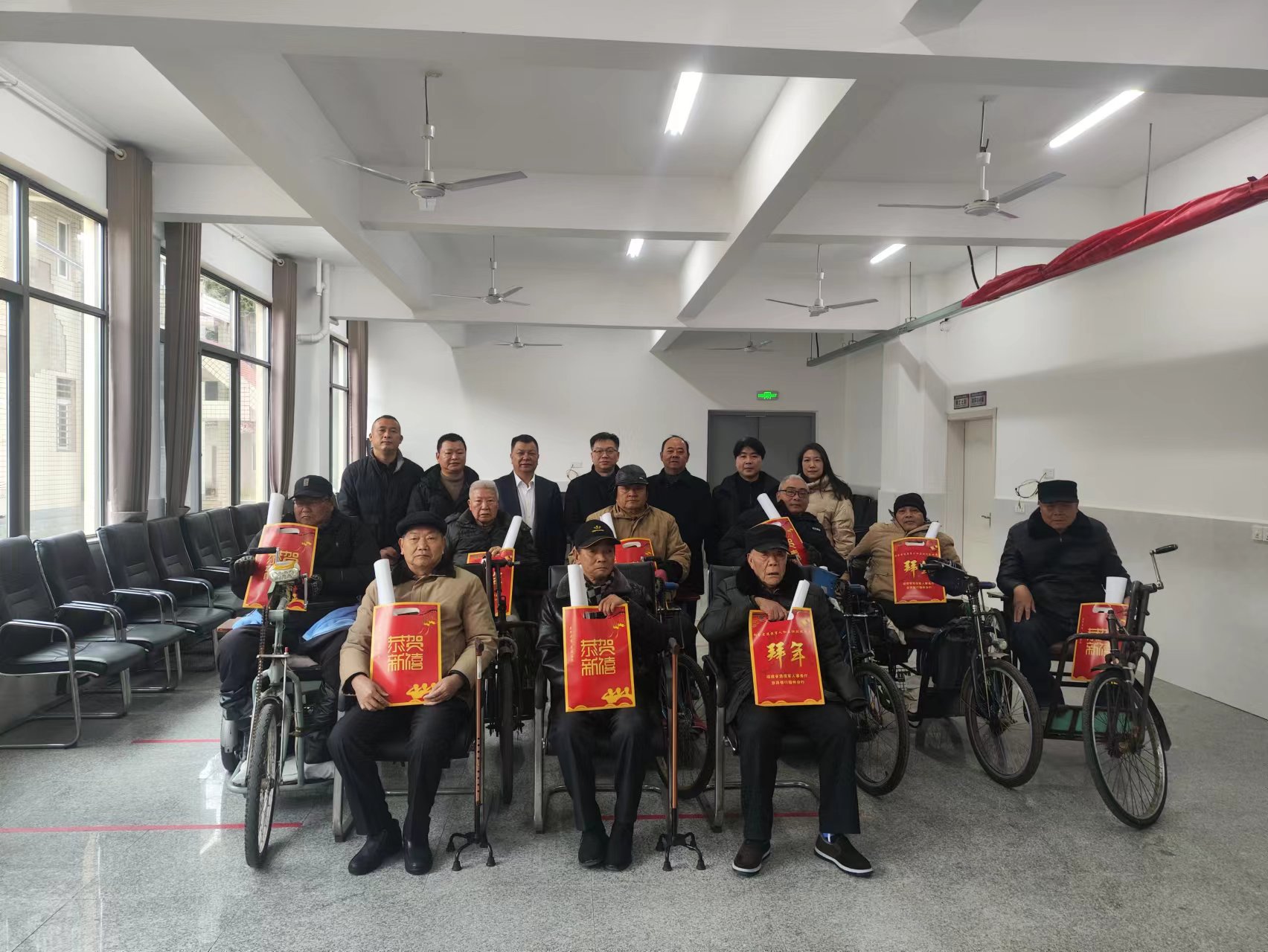 蔡靜南副廳長一行與榮軍休養員親切交談,關切詢問榮軍休養員們的身體和生活狀況,并送上節日慰問金和春節祝福。他說:“春節就要到了,黨和國家不會忘記曾經為國防和軍隊建設作出貢獻的榮譽軍人?!?/p> 慰問組為榮軍休養員貼春聯、掛年歷,營造濃濃的年味,讓榮軍休養員感受到榮軍醫院“家”的溫馨,讓他們能夠在這里安心休養,康樂過年。 慰問組還為榮軍休養員送上由愛心企業椅夫健康(廈門)智能科技有限公司捐贈的12部椅夫智能代步車,總價值8.4萬元。榮軍休養員激動地說:“感謝廳黨組的關心,感謝愛心企業的善舉,讓我們的生活更加便捷?!?/p> 隨后,慰問組一行還走訪慰問了離休干部遺屬,送上組織的關懷、節日的祝福和誠摯的問候。 建甌市人大常委會副主任丁炳鋒,椅夫健康(廈門)智能科技有限公司董事長揭如是,福建省榮譽軍人康復醫院領導班子成員,建甌市退役軍人事務局局長魏宏陪同慰問。 |