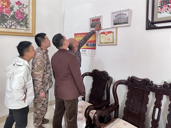 黃鵬輝父親與地方軍地領導分享黃鵬輝服役期間取得的一些榮譽