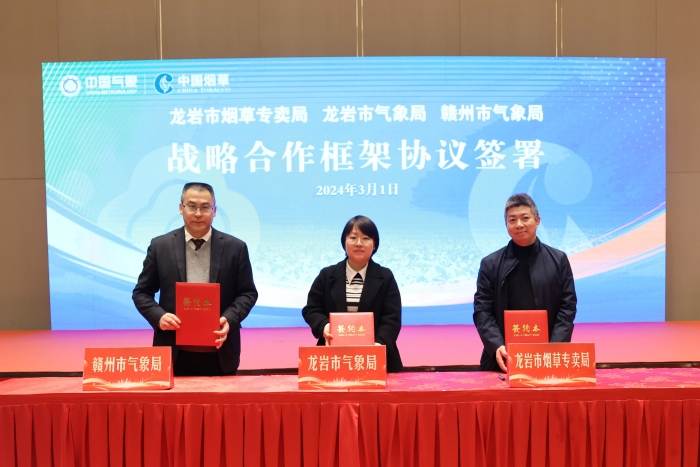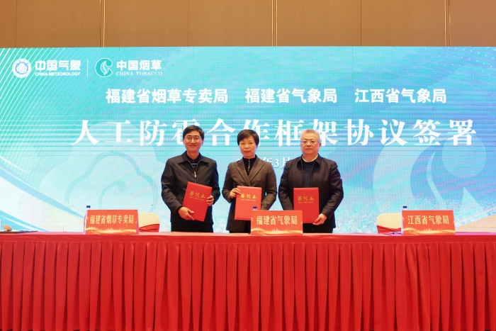 會上,福建省煙草專賣局、福建省氣象局、江西省氣象局簽署人工防雹合作框架協議;福建省煙草專賣局、福建省氣象局簽署戰略合作框架協議;龍巖市煙草專賣局、龍巖市氣象局、贛州市氣象局簽署跨省人工防雹合作框架協議;龍巖市煙草專賣局、龍巖市氣象局、梅州市氣象局簽署跨省人工防雹合作框架協議。根據協議,各方圍繞需求充分發揮在科研、項目、人才和技術方面的、優勢,最大程度降低冰雹、干旱、低溫、暴雨等極端災害性天氣對煙葉生產的影響,加強天氣上下游煙葉生產氣象保障。