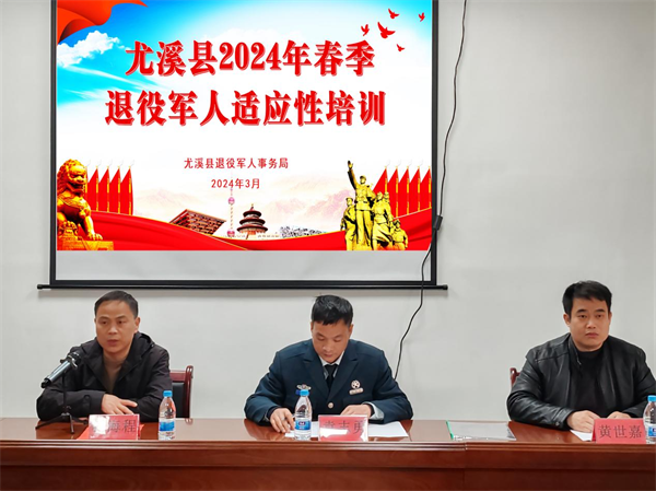 3月13日--15日,尤溪縣春季退役軍人適應性培訓在尤溪縣退役軍人火箭救援社會服務中心舉行,人武部袁志勇科長、退役軍人事務局楊海程副局長、黃世嘉副局長出席開班儀式,全縣2024年春季退役軍人28人參加本次培訓。