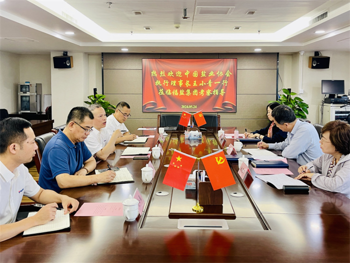 2024年5月24日,中國鹽業協會黨支部書記、執行理事長王小青一行到福鹽集團調研指導,實地了解福鹽集團的生產經營和企業發展情況。福鹽集團黨委書記、董事長林建平,黨委副書記、總經理莊燦陽等陪同調研。