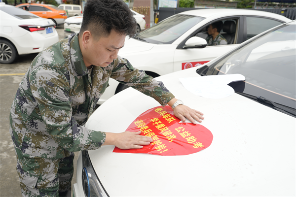 愛心車輛統一張貼“老兵車隊 公益助考”標識 “作為退役軍人,積極參與愛心送考是一件非常光榮的事情,老兵車隊承諾將為考生提供安全、便捷、周到的出行服務,同時預??忌扉_得勝,金榜題名!”張曉翔在啟動儀式上說道。