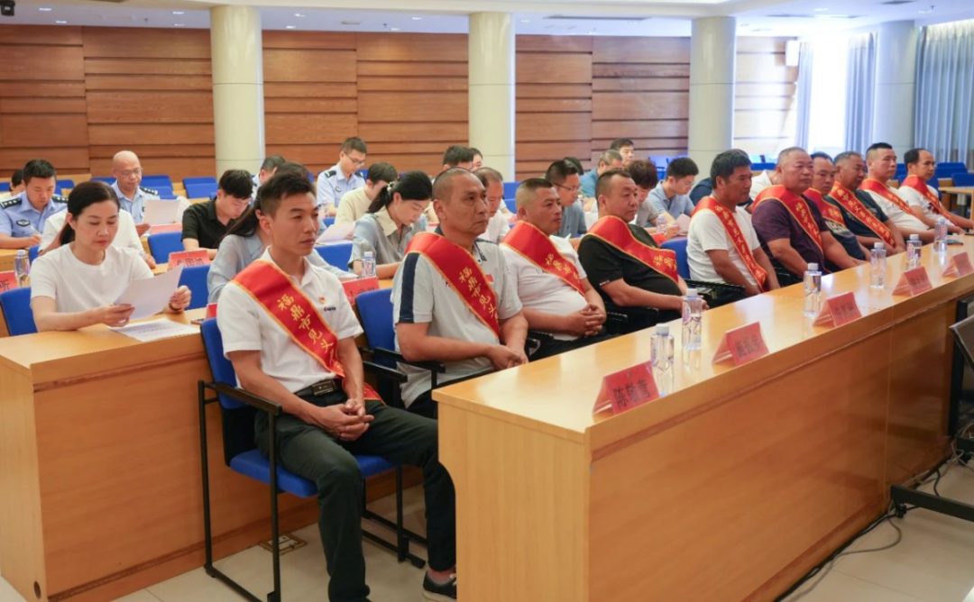 陳敬營(左一)參加福鼎市第十七次見義勇為先進個人(群體)表揚大會 為彰顯社會正氣,倡導見義勇為義舉,福鹽集團系統對陳敬營勇救落水群眾的先進事跡進行了宣傳報道并弘揚學習。陳敬營先后榮獲福鼎市公安局“見義勇為確認證書”,被福鼎市委文明辦評為2023年(第二批)福鼎市“身邊好人”,被寧德市委文明辦選入“寧德好人榜”,被福鼎市見義勇為人員獎勵和保護工作委員會授予“福鼎市見義勇為先進個人”榮譽稱號。