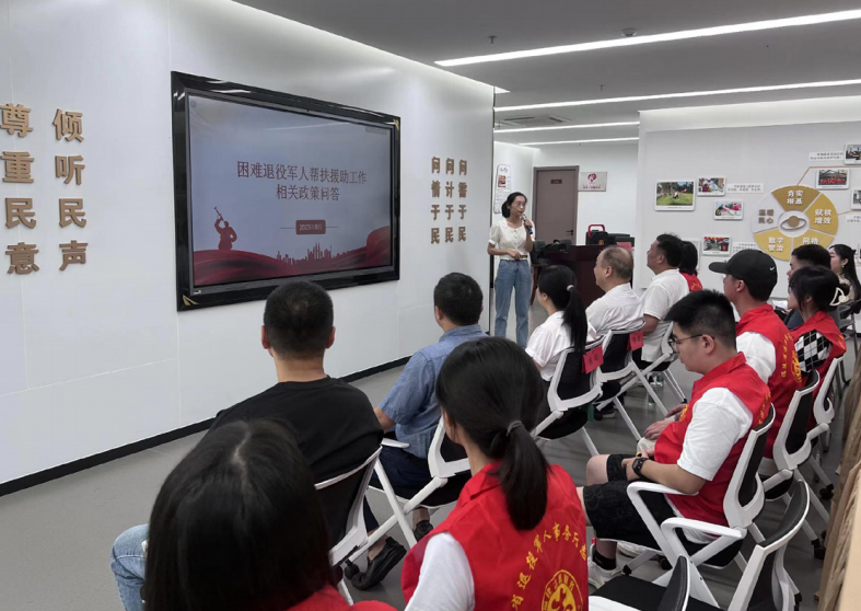 來自省退役軍人事務廳的青年宣講隊向社區退役老兵介紹困難幫扶、崇軍優待相關政策,面對面解疑惑、話家常。