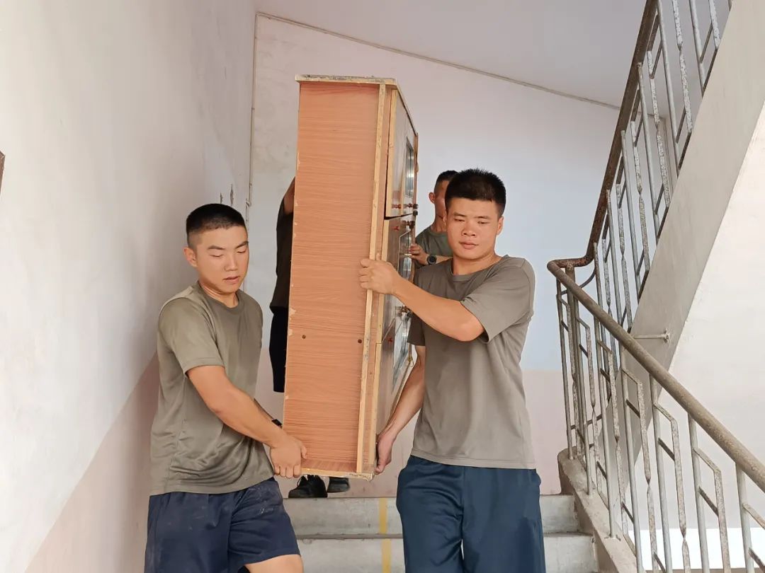 “小心桌角別磕到墻壁!”“前面過樓梯轉角的時候注意一下!”“搬的時候輕一點……”戰士們對所有物品都輕搬輕放,從高樓層搬運到地面,再運送上車;車輛途經3公里的路程,到達邊城中學新校區,戰士們又小心翼翼地卸貨,搬運到學校指定位置。