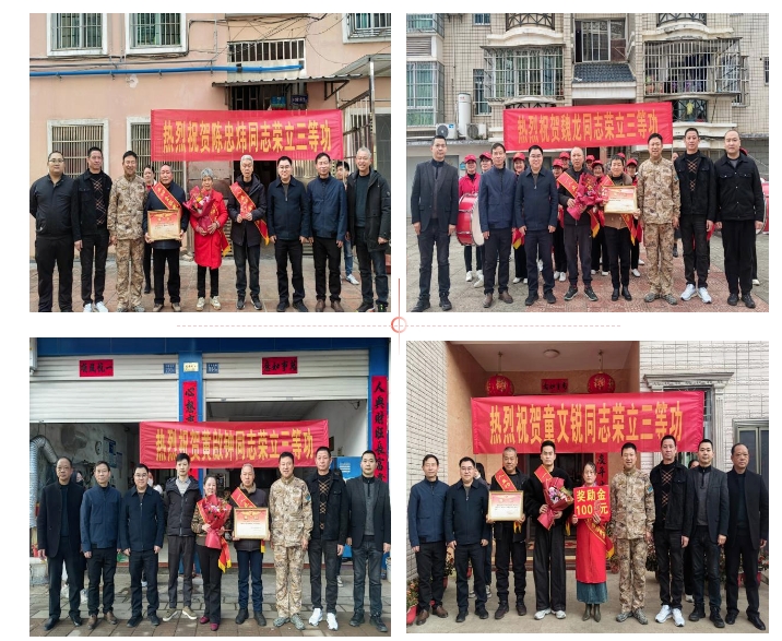春回大地萬象新,尊崇榮光暖兵心。2月11日上午,龍巖市連城縣委常委、副縣長張開和連城縣人武部政治委員柳軍鋒帶隊,連城縣退役軍人事務局、蓮峰鎮等單位組成送喜報慰問組,為8名榮立三等功(三級表彰)的現役軍人家庭送去喜報。通過隆重的儀式,讓尊崇之光在新春的城鄉間熠熠生輝。