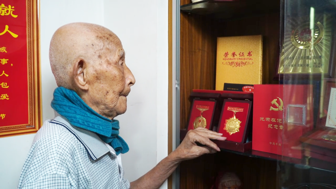 編者按:為紀念中國人民抗日戰爭暨世界反法西斯戰爭勝利80周年,深入挖掘抗戰老兵事跡,傳承紅色基因,省退役軍人事務廳聯合各地市退役軍人事務部門開展走進抗戰老兵家庭,重溫抗戰歷史系列活動。廳官網官微開辟“致敬抗戰老兵”專欄對此進行系列宣傳,今日推出《南征北戰11年,腿斷過兩次,抗戰老兵段兆善的烽火人生》故事。 半條毛毯在光影里靜靜躺著,泛黃的絨毛上深淺不一的補丁,那是血染的繃帶,是雪夜的褥子,更是一位老兵永不褪色的勛章。 今年是紀念中國人民抗日戰爭暨世界反法西斯戰爭勝利80周年,98歲的段兆善輕撫右腿那道貫穿股骨與髂骨的傷疤,目光如炬:“15歲扛槍,16歲負傷,南征北戰11年,這條腿斷過兩次,能活著看到新中國成立,值了!”