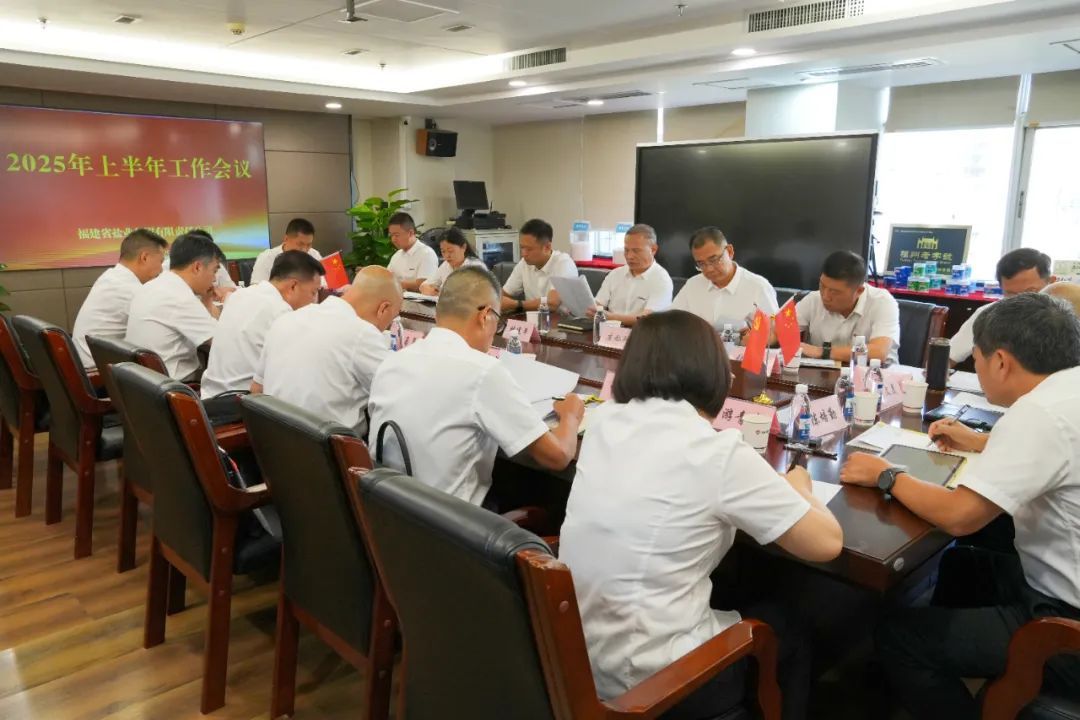 2025年7月29日,福鹽集團召開2025年上半年工作會議。福鹽集團董事長林建平、總經理莊燦陽等領導班子成員、中層管理人員及權屬企業代表參會。會議由莊燦陽主持。
