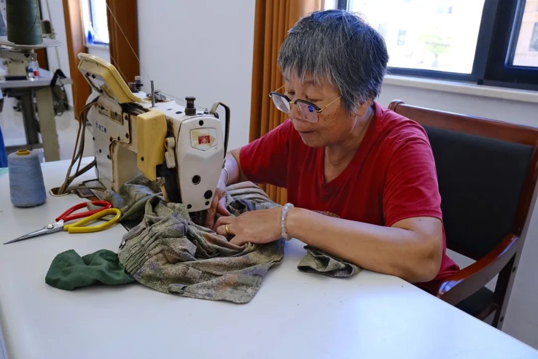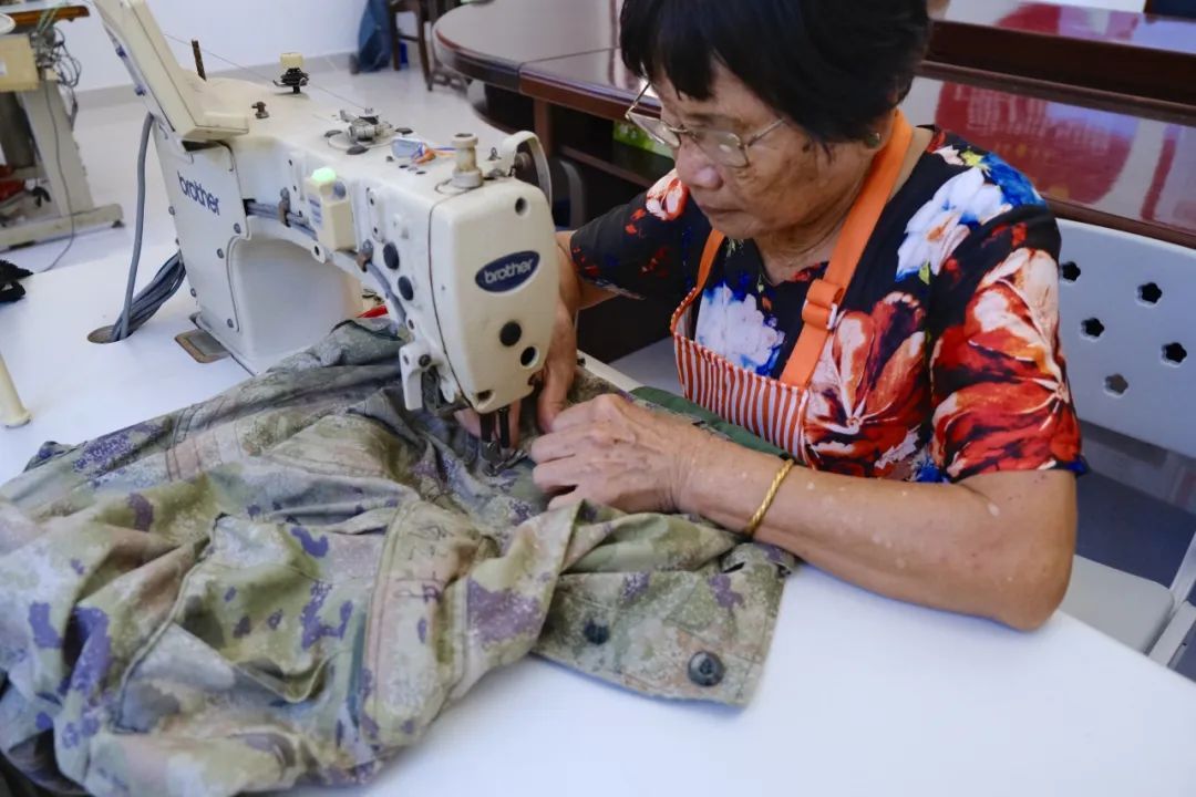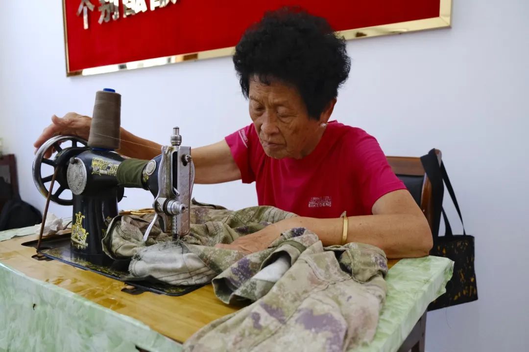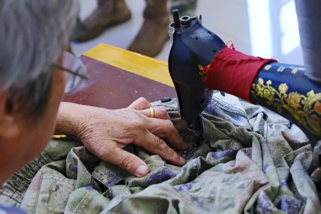“多走幾遍線,才耐穿!” 縫補現場,阿姨們神情專注。她們認真傾聽戰士們的需求,仔細檢查每一處磨損、開線、破洞?!八麄兊挠柧殢姸却?,要仔細檢查,脫線、破損的地方都要來回多走線幾遍才耐穿?!边@句話是阿姨們互相提醒的口頭禪,更是四代人積累下來的服務準則和對戰士們最樸實的關愛。她們不僅縫補看得見的破損,更憑借經驗加固那些戰士們尚未發現的“隱患”處,讓每一件修補好的衣物都能經得起摸爬滾打的考驗。