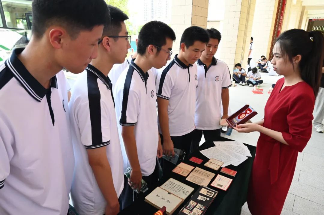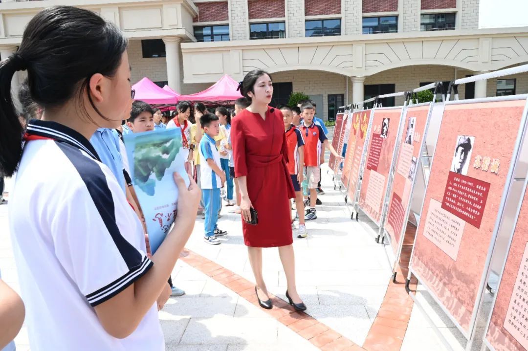 操場兩側排列著不同主題的展區與體驗項目,學生們不再是坐在禮堂里被動聽講,而是走進一個個情境之中,成為歷史的親歷者、感受者和發問者。 不遠處的抗戰英烈事跡展區,十塊圖文展板靜靜矗立,呈現全國及漳州本地抗戰英烈的感人故事。展板前,漳州市烈士紀念設施保護中心的講解員動情講述,學生們凝神傾聽,一本本英烈事跡宣傳冊在他們手中傳遞。年輕的面孔與黑白照片中的英雄,仿佛在這一刻跨越時空相遇。