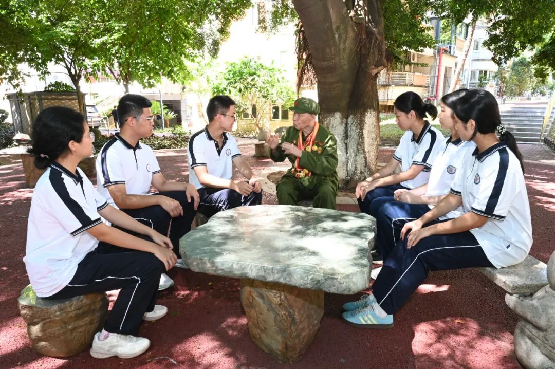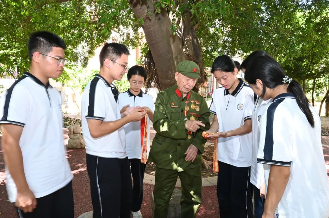 臨別時,老人緊緊握住他們的手,反復叮囑:“你們要珍惜現在的好時光,好好學習,將來成為國家的棟梁!”榕樹下,學生與老兵用軍禮向革命前輩們致敬。 這場相隔八十年的對話,不僅是記憶的傳遞,更是一次精神的交接。年輕的目光與滄桑的眼神在此相遇,他們彼此致意,也彼此照亮。