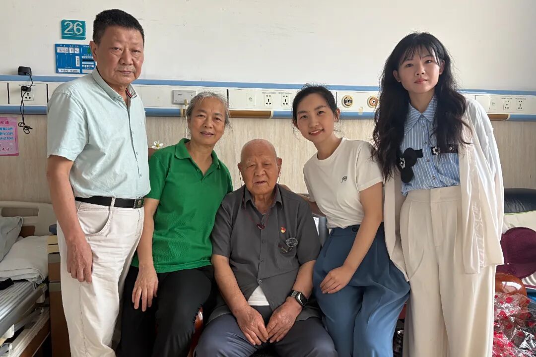 在廈門大學附屬中山醫院病房里,記者見到了抗戰老兵蓋鴻儒。他穿著一件深灰色襯衫,面容和藹,笑瞇瞇地跟我們打招呼。雖然腿腳不便,但已近百歲的蓋爺爺聲音依舊洪亮,操著一口濃重的“山東味兒”普通話。