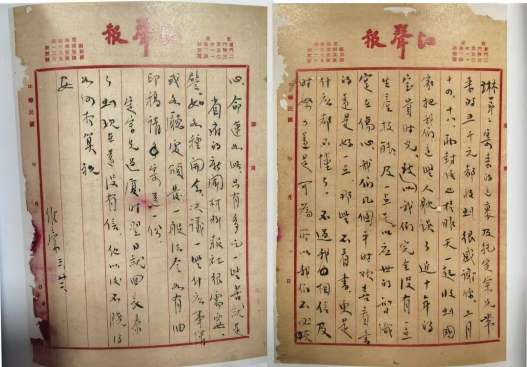蔡友琳捐贈陳維廉寄給他的信件 抗戰勝利后,蔡友琳在福建省政府“設考會”供職期間,因工作便利他能接觸到許多機密文件,便與地下黨人、《江聲報》的陳維廉聯系密切。應陳維廉要求把省政府有關行政設置、戰局通報、人事調整、會議決議、新聞資料等都備份并寄給他,在不知不覺中為廈門地下黨做了外圍工作。這些信件,不僅是兩人“以筆為槍”的見證,更是為福建解放做出的無聲貢獻。 如今,百歲高齡的蔡友琳早已回到魂牽夢縈的家鄉長泰,在徑倫村安享晚年。他總說:“戰爭教會我最珍貴的,是珍惜和平?!敝荡思o念中國人民抗日戰爭暨世界反法西斯戰爭勝利80周年之際,蔡友琳將與陳維廉的往來書信捐贈給長泰區檔案館。他說:“這些東西放在檔案館里,比放在我家里更安全,此外,還能讓更多人知道,當年的年輕人是怎么拼命守護這片土地的?!?/p> |