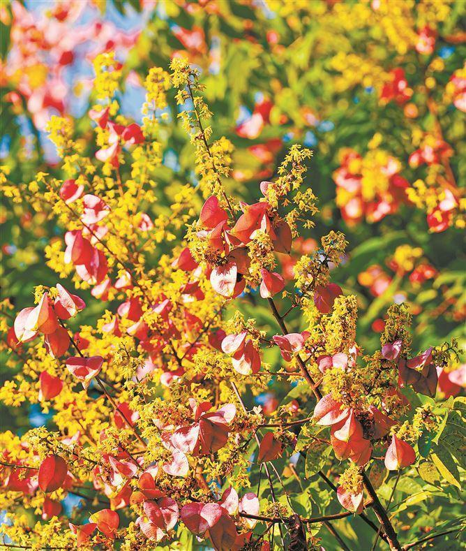 園博苑里,欒樹為步道綴上繽紛色彩。