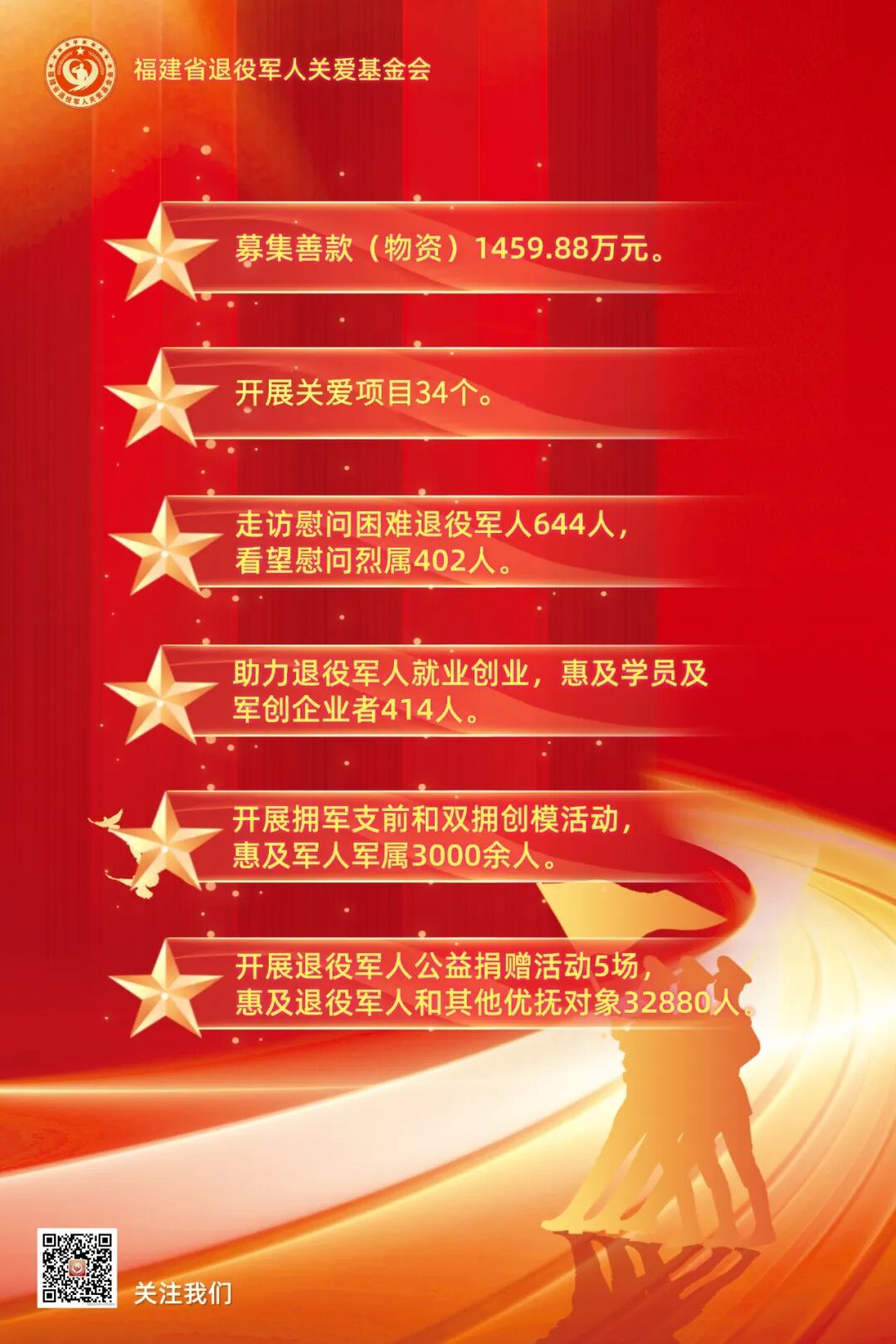 一個個關愛項目落地見效,一場場關愛活動成功舉行,一次次慈善捐贈愛心行動,一張張溫情瞬間映入眼前,見證了關愛行動溫暖時刻,匯聚著社會各界的涓涓愛心。 愛始于心,善始于行。2023年9月20日,在省退役軍人事務廳黨組精心指導下,福建省退役軍人關愛基金會正式成立,2年來,基金會始終不忘初心使命,凝聚愛心力量,傳遞黨和政府的關懷,傳送企業和社會組織的愛心,讓退役軍人和其他優撫對象獲得感、榮譽感、幸福感成色更足,有力有效推動我省退役軍人服務保障工作高質量發展。 基金會成立以來,始終秉持“服務宗旨、尊崇關愛”的理念,致力于搭建政府與退役軍人之間的橋梁,在解困幫扶、助力就業創業、擁軍支前、思政引領、宣傳研討等項目方面探索實踐,著力解決退役軍人和其他優撫對象急難愁盼問題。