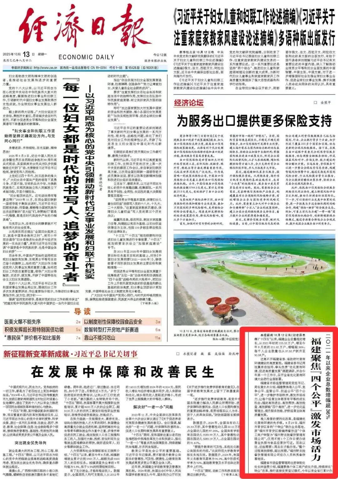 今日,《經濟日報》以《福建聚焦“四個公平”激發市場活力》為題,頭版報道省市場監管局重點優化營商環境,助力我省企業總數增幅超36%的相關工作情況。