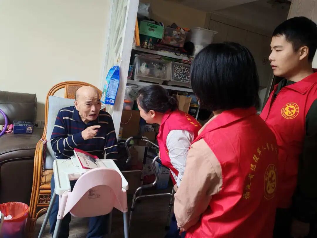 活動期間,志愿者們還專門以認領“微心愿”的方式,上門慰問了社區2名90歲以上的長壽老人,其中1名是老退役軍人,為他們送上“微心愿”慰問品,詳細詢問身體狀況,并叮囑他們保重身體。隨后,志愿者們還與社區工作人員一道為社區11名老人送上節日慰問,進一步擴大溫暖覆蓋面。