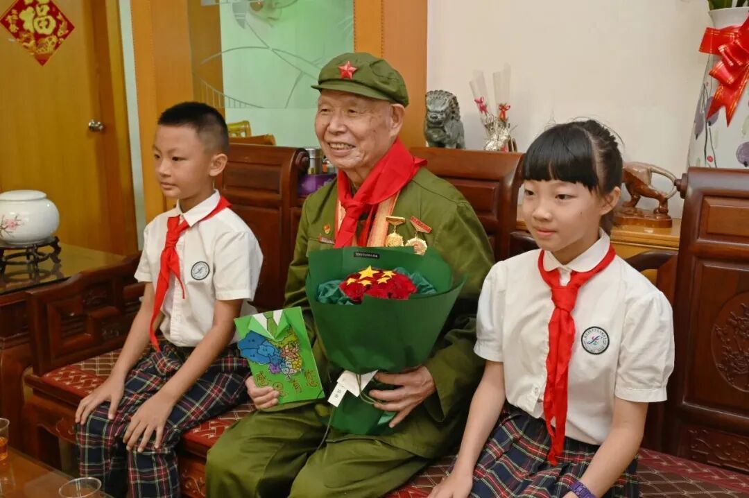 ▲“烽火記憶照前路 青春礪劍啟新程”的主題活動中,張宜順向學生們講述烽火歲月。(漳州市退役軍人事務局 供圖) 傳承精神: 記錄歷史刻不容緩 2025年,正值中國人民抗日戰爭暨世界反法西斯戰爭勝利80周年。5月,漳州市退役軍人事務局聯合漳州軍分區政治工作處、市委老干部局開展“搶救性挖掘抗戰老兵事跡”專項行動?!懊看瓮崎_老兵家門,都像打開一扇即將關閉的歷史之窗?!闭闹菔型艘圮娙耸聞站窒嚓P負責人不禁感慨道。今年初,一份沉甸甸的數據如同警鐘:漳州全市登記在冊的抗戰老兵僅剩15人,平均年齡逾九旬。4月,又一位老兵溘然長逝,搶救記憶工作刻不容緩。 張宜順正是登記在冊的抗戰老兵之一,也是少數能夠清晰講述往事的親歷者。這位精神矍鑠、樂觀健談的老兵積極配合著多維度的記錄:面對面深度訪談,錄音錄像留存,拍攝佩戴紀念章的標準照及生活照,提供勛章、證件、照片、書信等歷史實物得以數字化保存,積極協助相關部門千方百計留存歷史記憶。