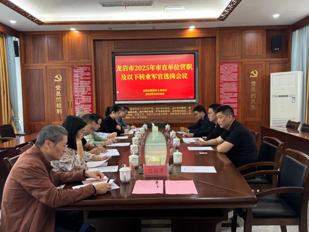10月30日上午,龍巖市2025年度市直單位營職及以下轉業軍官選崗會議順利舉行,3名符合市直部門安置條件的轉業軍官成功選定心儀崗位,這標志著本年度轉業軍官安置任務圓滿完成,龍巖市接收的19名轉業軍官全部安置到位。