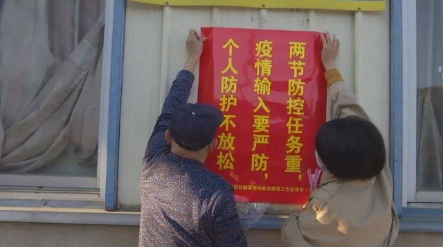 在福建和其昌竹業股份有限公司廠區內,永安市曹遠鎮政府的工作人員與企業職工正在粘貼防疫標語和發放“留永過年”倡議書,呼吁外地員工留在本地過年。