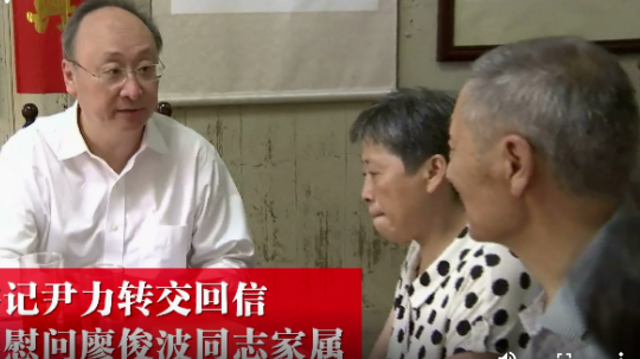 尹力專程到季平英同志家中轉交回信并共同學習貫徹