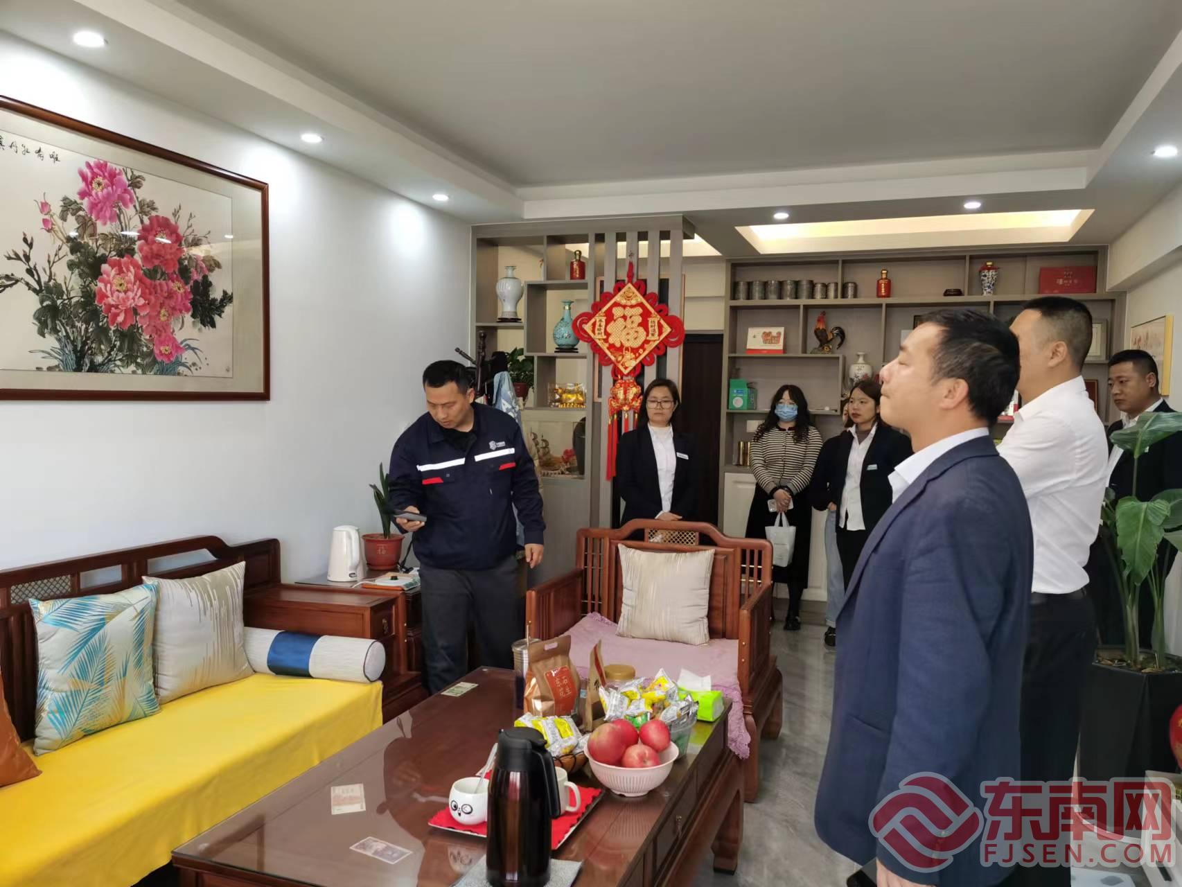 檢驗員檢測電梯運行噪音。 3月16日,記者來到了位于晉安區鶴林路的橫嶼新苑一區。該小區為福州市城鄉建總集團有限公司建設開發,于2021年3月交房,所用電梯品牌為通力,轎廂內的保護擋板仍未拆除。乘坐電梯時,記者未聽見明顯異響。而在林先生家中,坐在與電梯井一墻之隔的客廳沙發上,便不時有“空隆”聲傳入耳中,確有敲打之感。林先生說,每天早晚出入高峰期,“敲打”聲就頻繁出現;尤其是夜深人靜的時候,聲音格外清晰,躺在臥室里都聽得見?!坝袝r候半夜都會被吵醒。我曾經問樓上鄰居是不是在敲東西或者使用跑步機,樓下鄰居也曾經問過我這樣的問題?!绷窒壬硎?,自家在裝修過程中并未改動過客廳墻體。