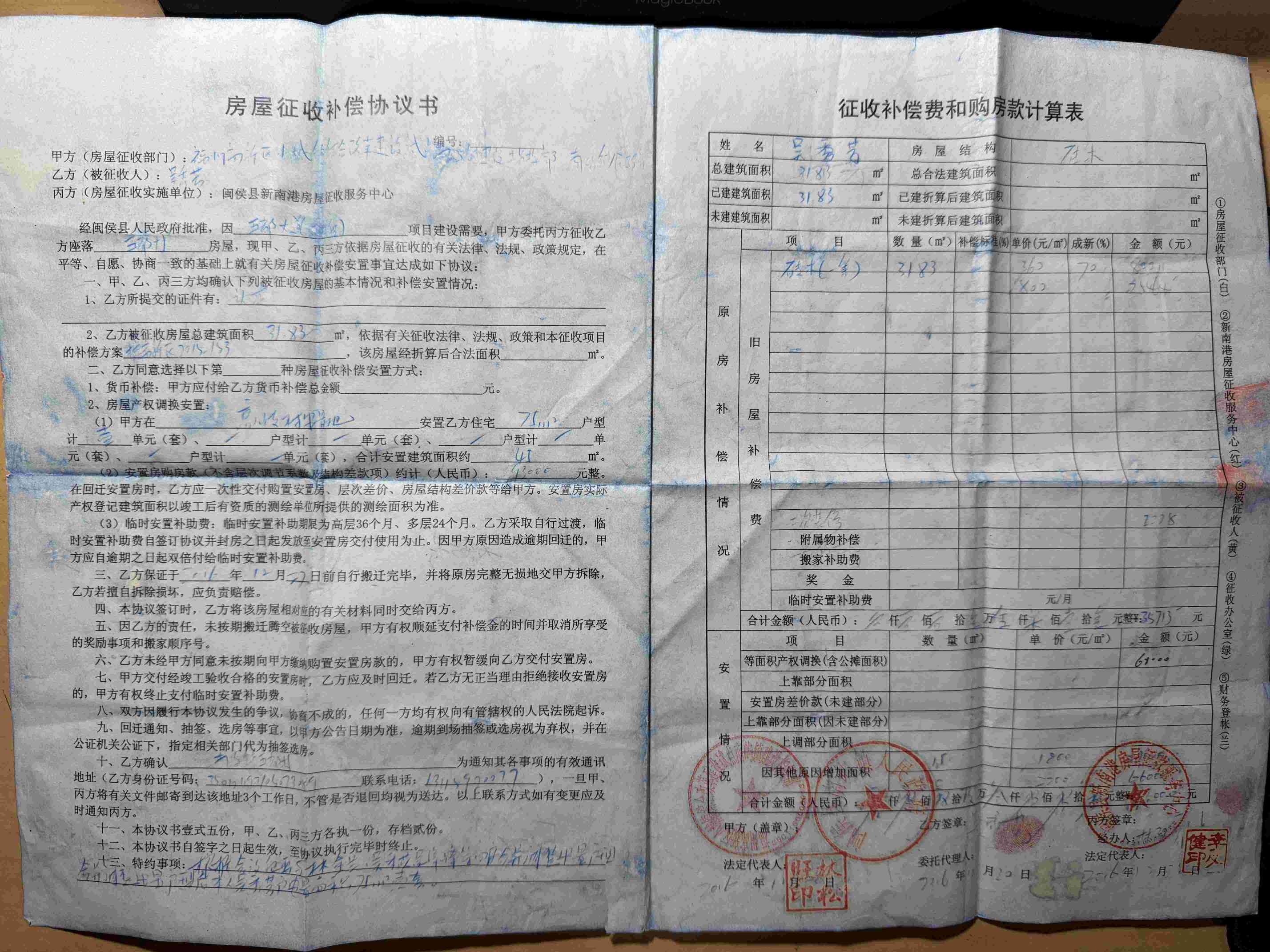 村民:拆遷7年 安置地在何處仍未知 南嶼鎮五都村留臂53號的陳先生告訴記者,2016年京誠公館項目征遷,其弟兄二人的房子被拆,每人換了一套135平方的安置房。如今7年過去了,協議中約定的高岐安置房早已回遷入住,陳先生一家卻沒有得到任何通知。“去問村里,村里說當時是閩侯拆遷辦做的,現在是高新區在安排房子;我們又去高新區政府查詢,人家說根本沒有這個拆遷項目傳上去,應該還在鎮里面;再找鎮里,鎮里又說要問閩侯新南港拆遷辦。而這個拆遷辦呢,今年在這里,明年在那里,現在在什么地方都不知道。打電話問呢,說高岐安置房已經沒了,其他問題應付幾句就掛了,最終還是沒結果……” 陳先生說,這些年來他多次向村里了解情況,村干部總說“馬上幫你問,有房子就安排”。但是,高岐安置房出來的時候,說要按順序,先簽協議的先拿;后來房源不夠了,他想申請改到旁邊的安置房,村里又說不行,因為當初沒有登記那里。前段時間村里就安置地點更改為兩園安置房征求過意見,他同意更改,并就自己名下的一套進行了登記。但是登記究竟算什么性質,什么時候能安置,他弄不清楚,因為協議上的安置地點并沒有改過來…… 陳先生一家的鄰居吳女士,同樣在為安置房一事煩惱。她告訴記者,自家三戶人拆遷7年,回遷問題至今沒有消息?!焙瀰f議之前帶我們去看安置房,說喜歡哪里就挑哪里??墒堑浆F在這么多年了,還沒有房子給我們回遷。去年我向鎮里和縣里投訴,反饋都是說村里沒有向上級遞交材料……”