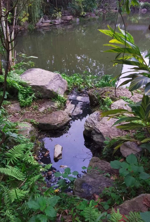 水井與人工湖銜接處,水體和石頭發黑 “這里的水原本是非常清澈的,清明節的大雨之后就變成了這樣?!爆F場,一位穿著紅馬甲的工作人員告訴記者,公園上方有居民區,懷疑是暴雨破壞了居民區的管道,維修時錯將污水管接到了雨水管上,或者是污水管爆裂滲透,污染了井水所致。 屏山公園現場管理人員表示,湖水確是清明節后變黑的,原因正在排查。據介紹,當時井里流出的臟水泛著白色浮沫,湖里的錦鯉都死了幾十條。公園管理中心立即報告了環保、建設、水務、街道等部門,并做了緊急處置,對湖體進行沖洗,逐步換水,并排查污水源頭。上周,相關單位前來提取了水樣,目前尚未告知結果。 當日,記者就此事聯系了福州市生態環境局。17日,福州市建設局相關負責人聯系記者稱,該局接到市生態環境局的反映,已讓屬地工作人員到現場查看,鼓樓區園林中心作為管理單位正在排查原因。18日,福州市生態環境局相關負責人林先生答復記者稱,鼓樓區生態環境局多次到現場排查,福州市生態環境局也對接了建設及園林部門,明確是鼓樓區園林中心的管轄范圍,該局將積極配合。 鼓樓區園林中心工作人員表示,該中心已聯合環衛、建設部門,正在全力查找源頭、治理問題。通過一段時間的緊急處置,污染情況已有所改善。不過,近兩日再次下雨后,又有污水滲出,該中心正在沿著井下一處污水管查找源頭,希望能盡快恢復水質。