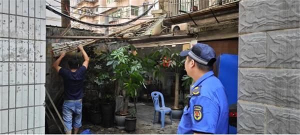 東南網8月19日訊(本網記者 劉惠萍)“在三元區崇桂新村內,部分一樓租戶私自把車庫(倉庫)改為店面,并違章搭建遮陽棚和廁所等,影響了居民生活和居住環境!”日前,三明一網友在東南網《直通屏山 省委領導留言板》如是反映。【留言詳情】 收到留言后,三元區城市管理和綜合執法局相關工作人員前往調查核實?!案鶕度魇谐鞘惺腥莺铜h境衛生管理條例》第十五條規定,在主、次干道兩側建筑物的業主或使用者,不得在建筑物頂部、平臺堆放影響市容的物品,不得在建筑物臨街面超出建筑物墻體設置防護網或吊掛物品,不得設置遮陽傘、蓬蓋?!痹摼窒嚓P工作人員表示,違反規定的,責令改正;拒不改正的,處五百元以上二千元以下罰款。