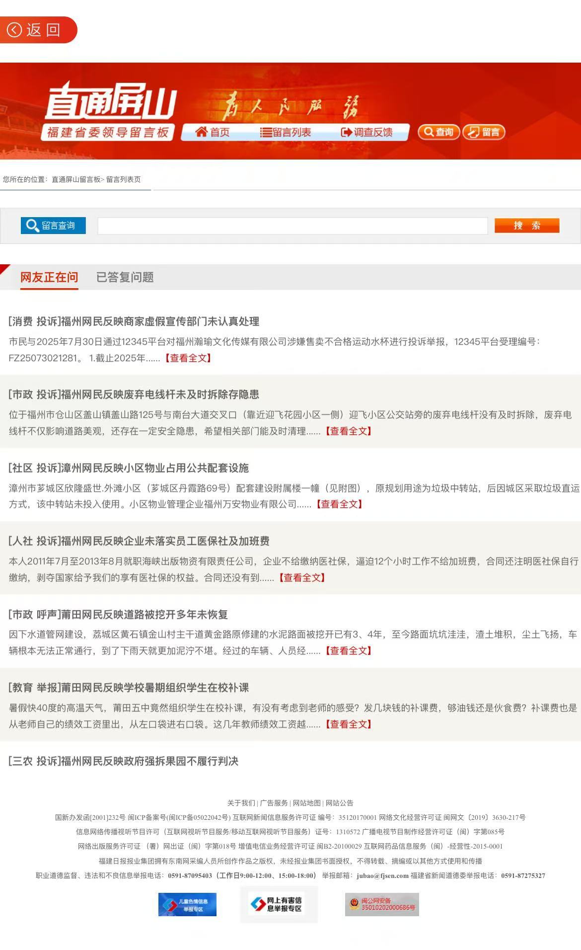 《直通屏山》自2011年1月在福建省委支持下創辦以來,已經運轉了十四年。 作為一個網絡問政平臺,它旨在向上反映群眾呼聲,向下傳遞政府聲音,搭建網民與省委領導之間的溝通橋梁。從一盞路燈、一條公交線路,到一條政令、一項規劃,許多留言都得到了相關部門的實質性回應和解決,為省委領導提供了決策參考。 過去,群眾可通過原有的網頁入口或東南網微信公眾號進入《直通屏山》留言;如今,隨著新福建客戶端成為全省權威信息發布端口及福建省“一報一臺一網(端)”重要輿論陣地,《直通屏山》的入駐進一步實現了從“桌面”向“指尖”的跨越,使網民留言更加便捷,讓社情民意的傳遞更加實時、高效。